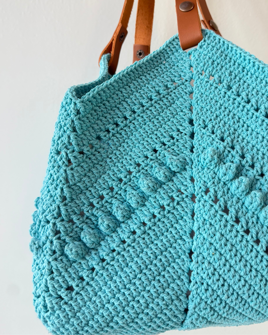 Crochet Leather Handle Tote by Jade / Turquoise