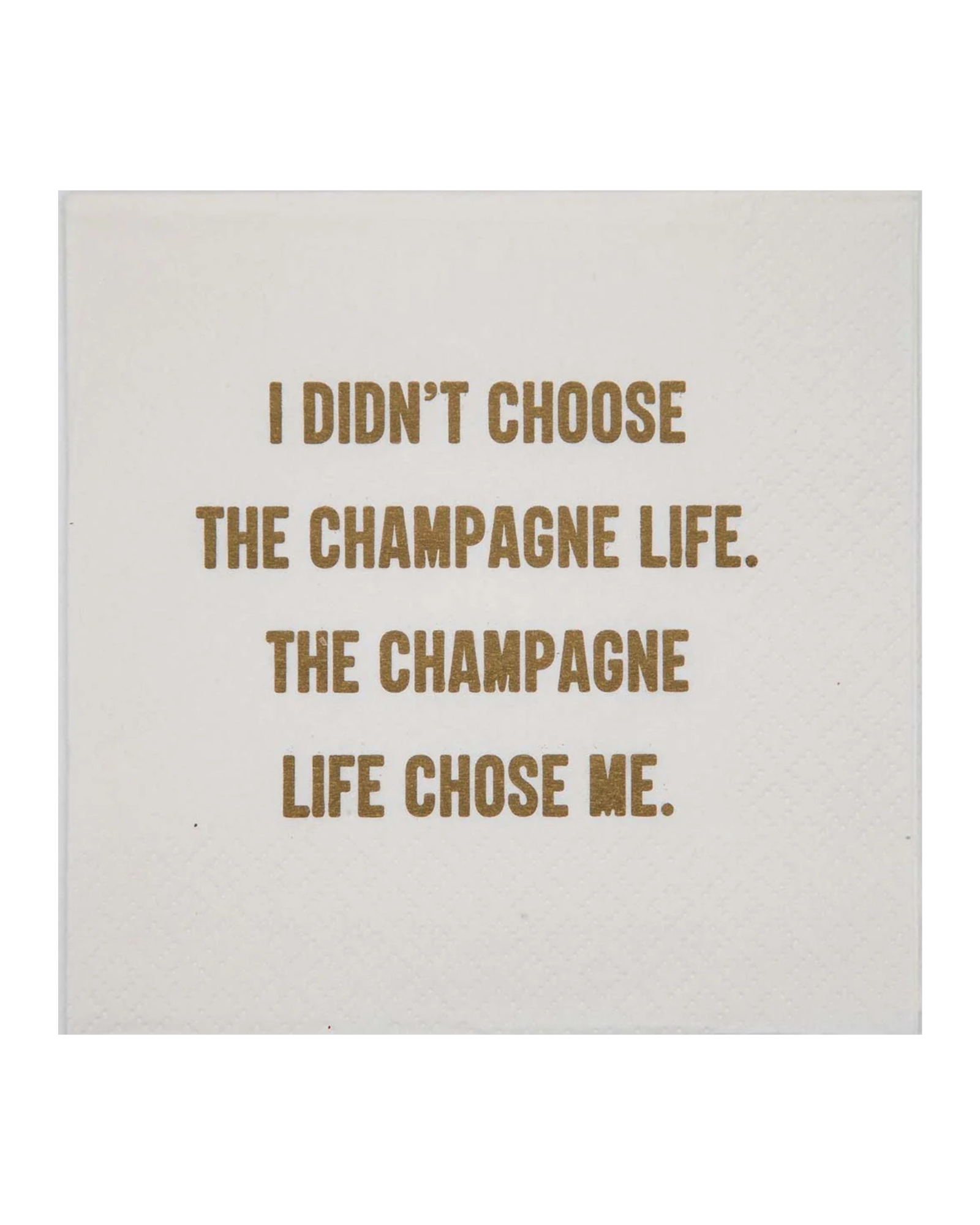 I didn't choose the champagne life. The champagne life chose me, cocktail napkin is perfect for your next girls’ night or cocktail party! This gold and white cocktail napkin is such a fun addition to any party or luncheon! Both men and women love this fun saying! Mary Phillips cocktail napkins toss out the underlining element of fun and attitude, making yours an event they’ll not soon forget. You can also pair this little number with a bottle of wine for a most coveted hostess gift! Each pack contains 20 5 x 5 three-ply cocktail napkins *super thick* packaged in polypropylene. Stock up for your next book club or to give to the hostess!