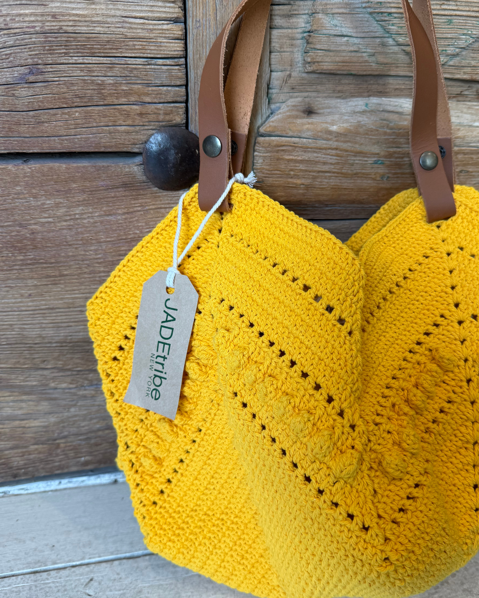 Crochet Leather Handle Tote by Jade / Yellow