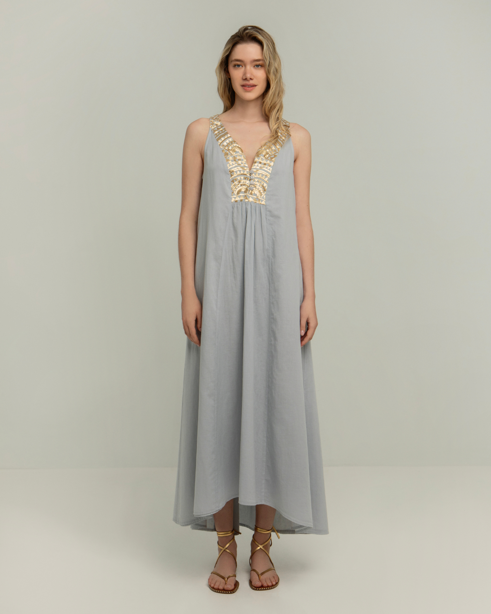 Dress Maxi New Triangle by Greek Archaic Kori / Lt Grey-Gold