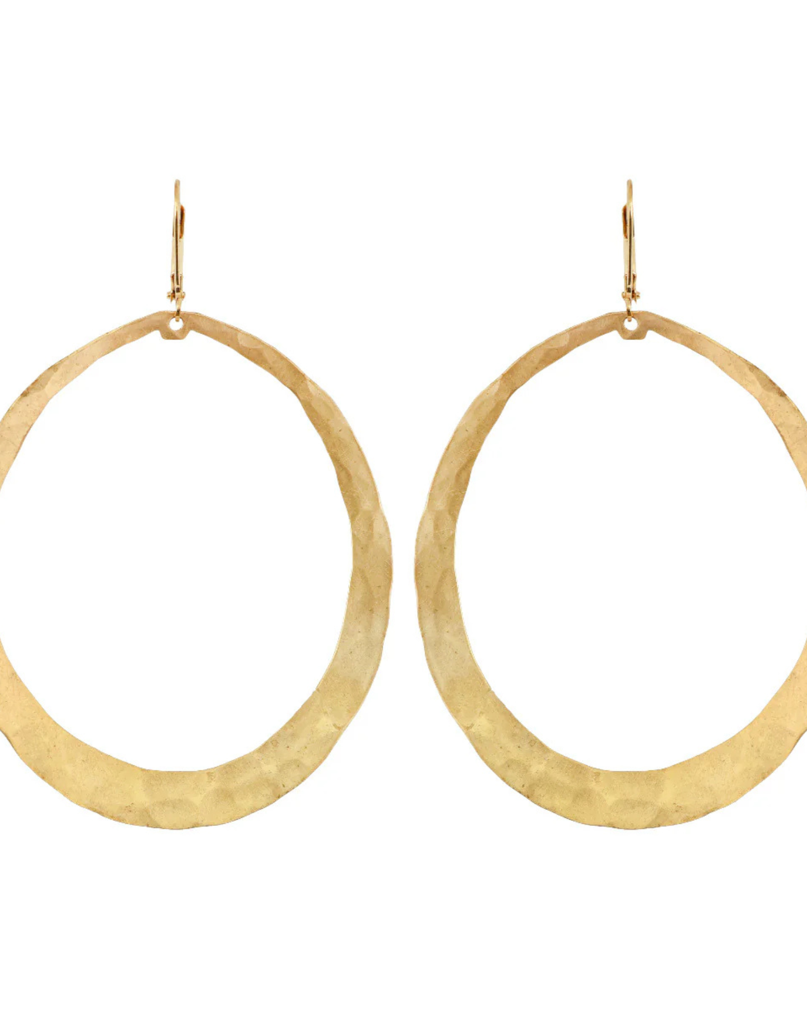 Modern brass shapes are hand-hammered for textural appeal. Gold-plated lever backs. Nickel and lead free.