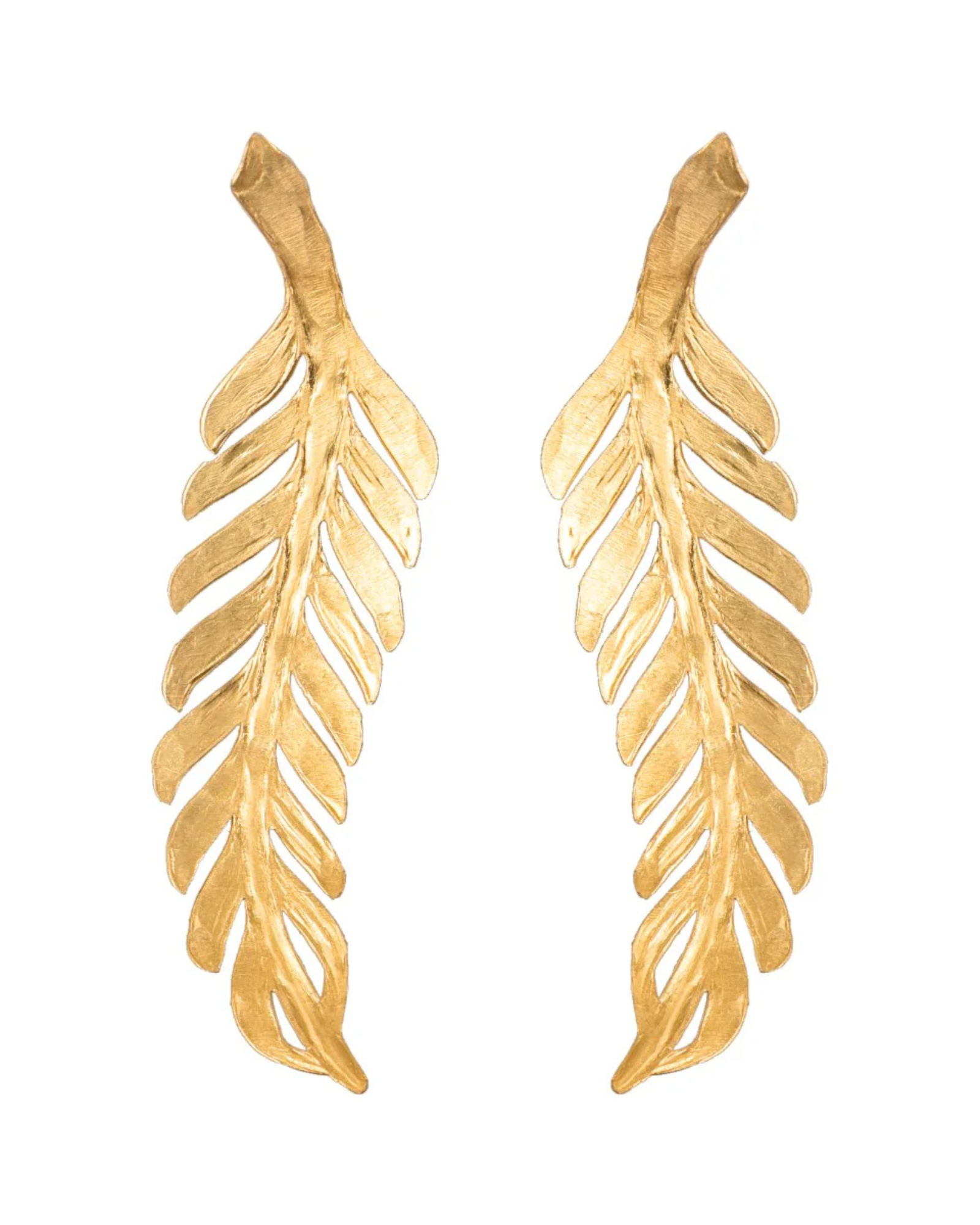 Undulating quills shine in this bold but featherlight pair. Hand-hammered brass with sterling posts. Nickel and lead free.